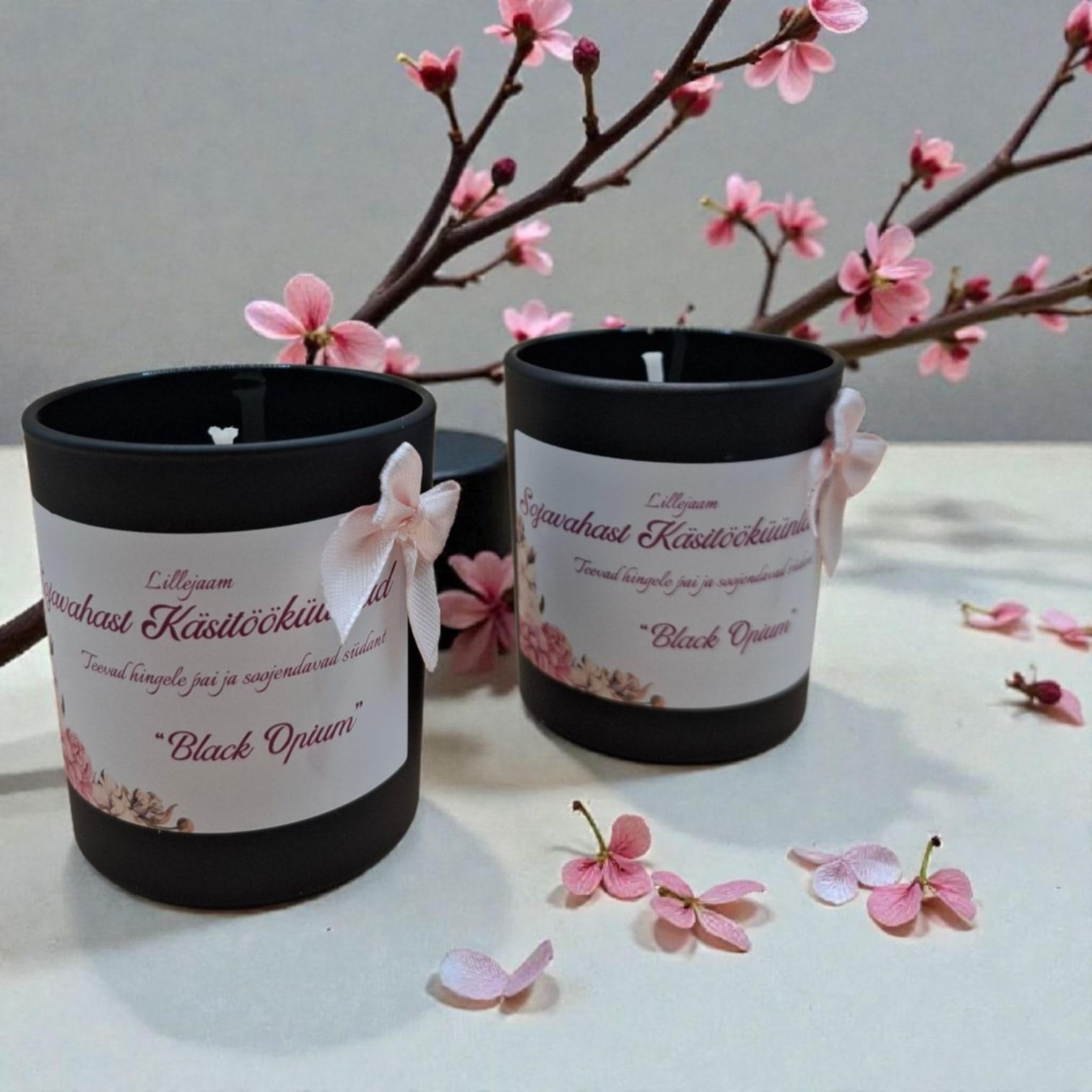 Black Opium loob ruumis sensuaalse ja lummava aroomi, mis ühendab kohvi sügavuse, magusa vanilje ja luksusliku lillelõhna. Avaneb rikkaliku kohvinoodiga, millele lisandub veidi tumedat karamelli. Südames segunevad jasmiini ja oranžiõie pehmed akordid, andes lõhnale naiselikku elegantsi. Baasis kõlavad sooja vanilje, muskuse ja õrna puidu toonid, mis jätavad ruumi sametise ja kauakestva aroomijälje. Küünal on valmistatud looduslikust sojavahast, mis põleb puhtalt ja ühtlaselt, levitades rikkalikku ja kvaliteetset lõhna. Kasutatud ASPOL UFIGREEN aroomiõli on ohutu ja kõrge kvaliteediga valik käsitöö küünaldele.