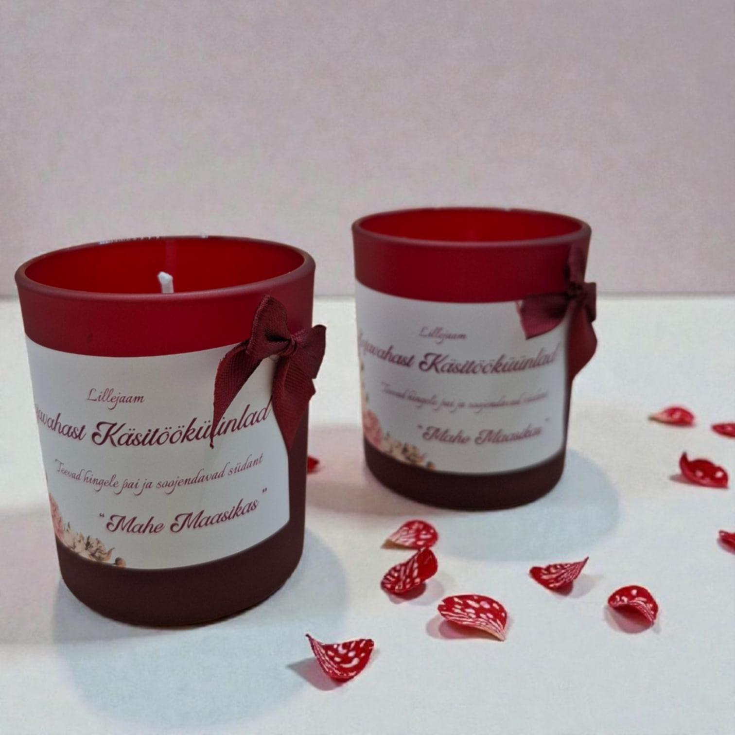 Mahe Maasikas täidab ruumi värske ja mahlase aroomiga, kus segunevad küpsete maasikate magusus ja õrn suhkrune marjanoot. Südames avanevad pehmed lille- ja kreemised akordid, mis annavad lõhnale soojust ja kodust hubasust. Küünal on valmistatud looduslikust sojavahast, mis põleb puhtalt ja ühtlaselt, levitades kauakestvat ning õrna lõhna. Kasutatud ASPOL UFIGREEN aroomiõli on ohutu ja kvaliteetne valik käsitöö küünaldele.