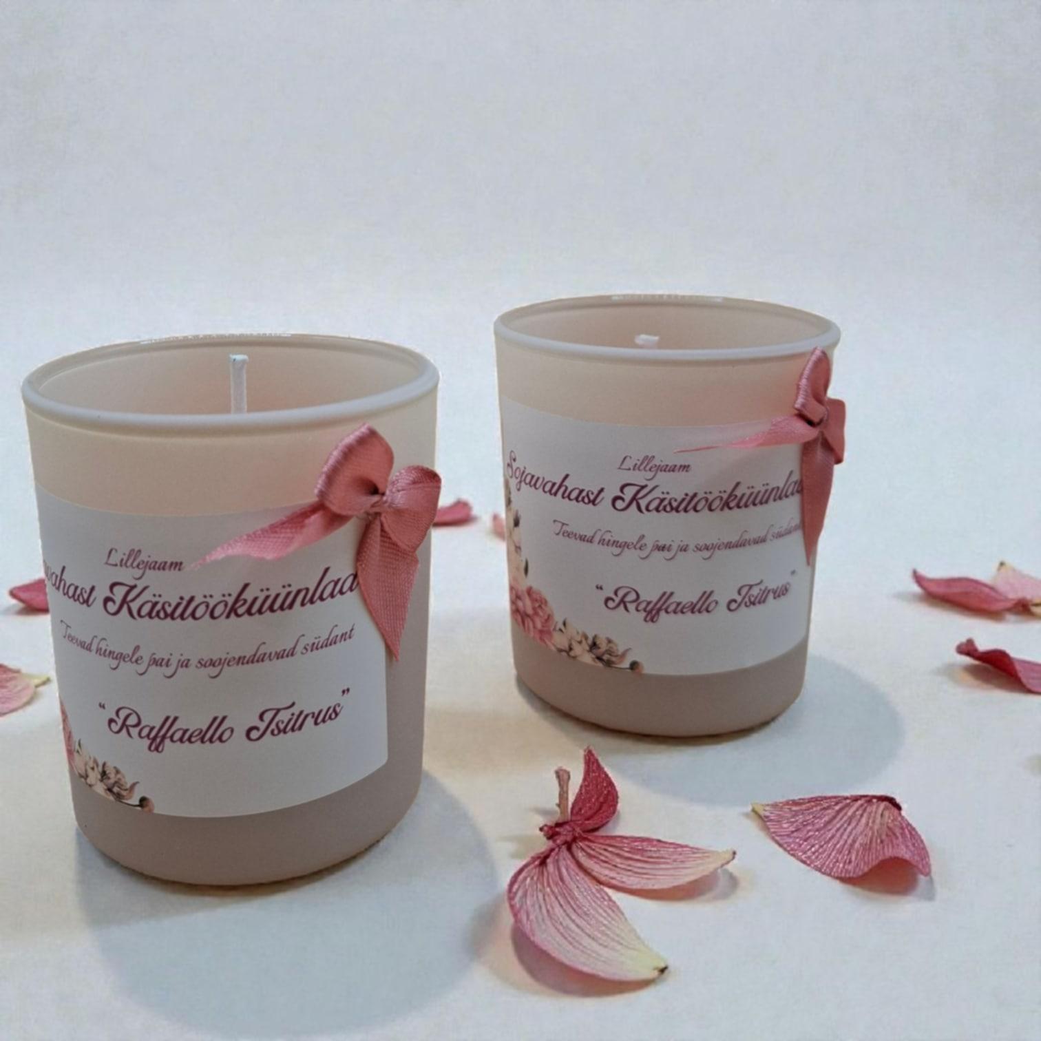 Raffaello Tsitrus ühendab kreemise kookospähkli pehmuse ja värskendava tsitruse kirkuse, luues kerge, magusa ja samas särtsaka aroomi. Lõhn avaneb mahlaste apelsini- ja sidruninoodiga, millele lisandub kookose õrn sametisus. Südames segunevad valged õied ja pehme vanilje, mis annavad lõhnale luksusliku ja puhta signatuuri. Baasis jäävad kõlama kreemised ja soojad noodid, meenutades troopilist maiust tsitruse värskusega. Küünal on valmistatud looduslikust sojavahast, mis põleb puhtalt ja ühtlaselt, täites ruumi kauakestva ning kvaliteetse aroomiga. Kasutatud ASPOL UFIGREEN aroomiõli on ohutu ja kõrge kvaliteediga valik käsitöö küünaldele.
